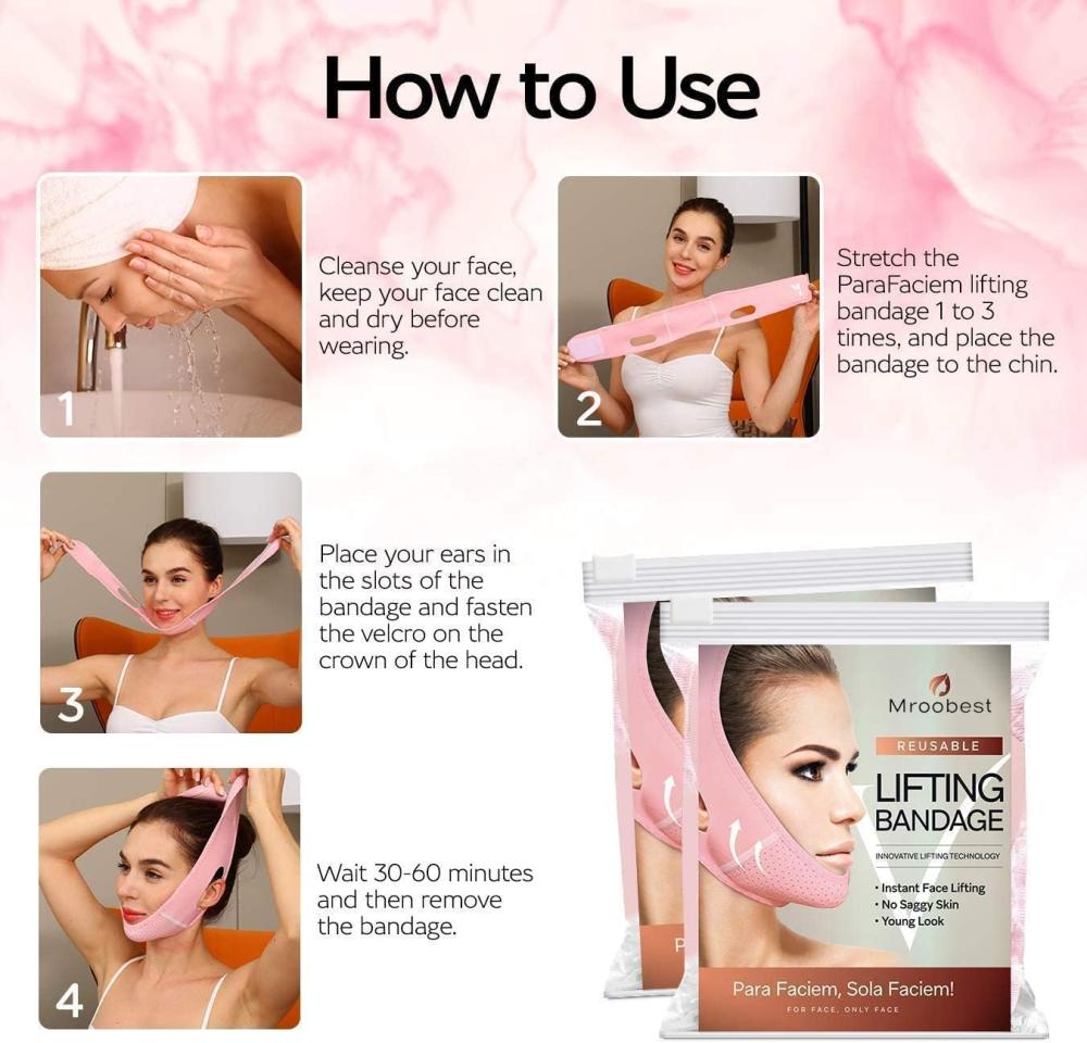 - 💕 ضمادة الرفع: ضمادة رفع بارافاسيم هي طريقة فعالة ومفيدة لإزالة الذقن المزدوجة والجلد المترهل على طول محيط الوجه. يمكن استخدامه للرجال والنساء..